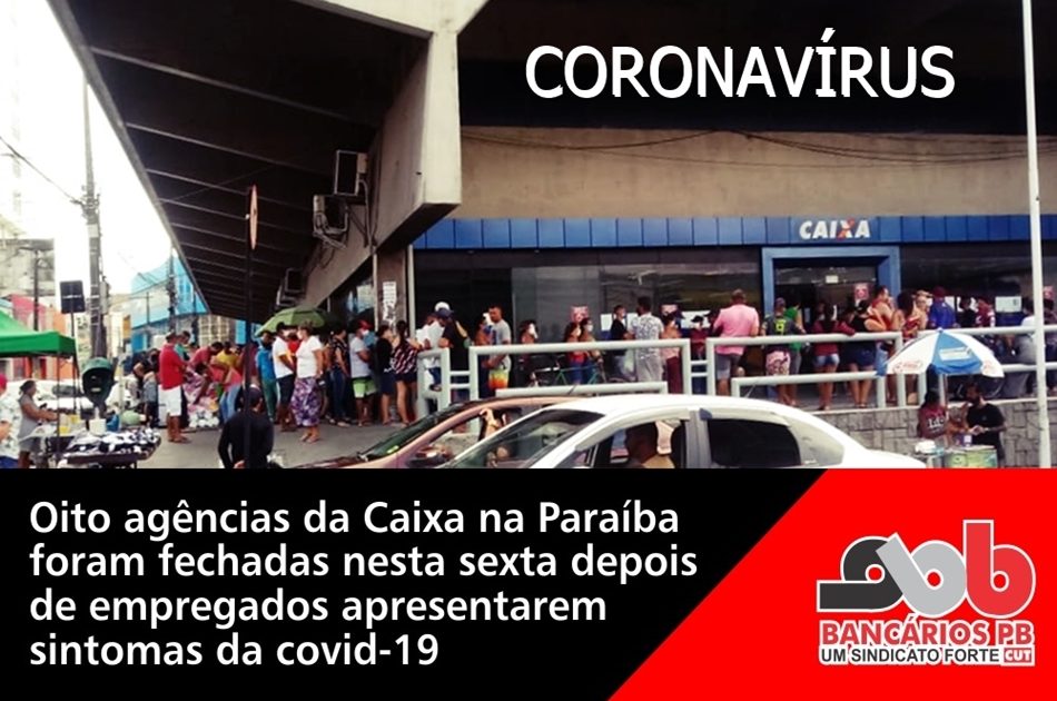 Oito agências da Caixa Econômica Federal, vinculadas à SR João Pessoa, foram fechadas nesta sexta-feira (15) depois que vários empregados apresentaram sintomas da covid-19. Eles foram afastados do trabalho e as agências passarão por um processo de sanitização. Ao menos dez pessoas, entre funcionários e terceirizados, já testaram positivo para a doença, um deles está internado e o caso é delicado.